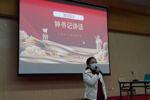 最后,党委副书记钟彦姝做总结发言。首先,她希望通过四位退伍军人的演讲以及身边的例子来号召经贸学子积极应征入伍,为祖国的国防事业做出贡献;其次,她鼓励同学们在面临今后的选择时,要保持个性,坚定自己的信仰,无论选择哪条路都应是自己的心之所向。最后,钟书记祝愿2019级的同学前途似锦,早日成为优秀校友。