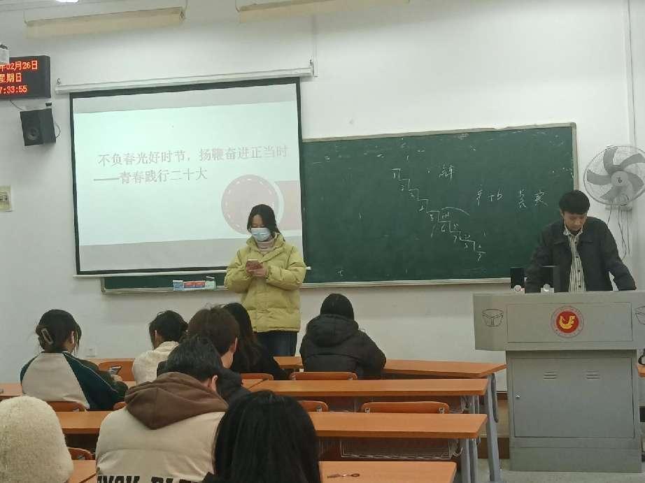 本网讯(通讯员 左寅生 陶嘉怡)为持续学习宣传贯彻党的二十大精神,鼓励学生践行党的二十大精神,引导学生以崭新的姿态、饱满的精神投入到新学期学习生活中,加强思想政治引领,我们结合学生实际,于2月26日晚开展了开学第一次主题班会。