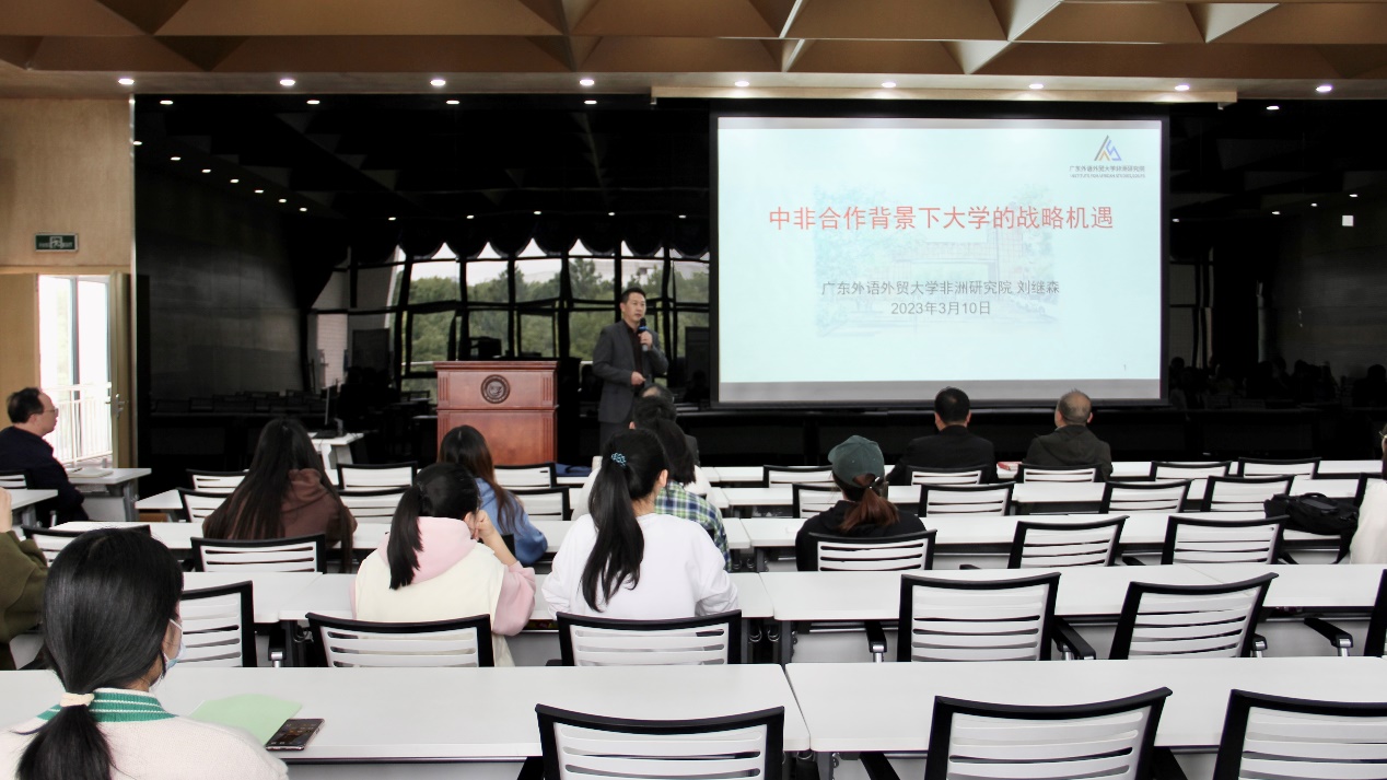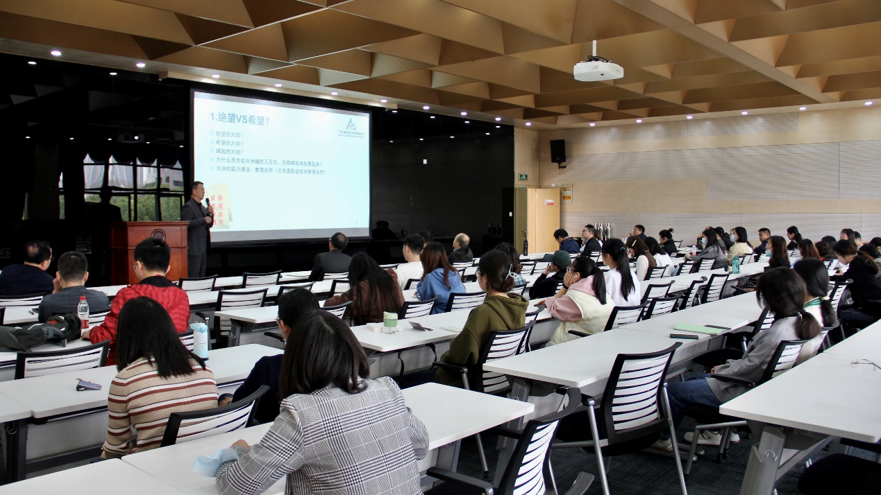 刘教授围绕“非洲是一个怎样的大陆”、“我们为什么要关注非洲”、“中非合作给大学带来了哪些机遇”、“如何把握中非合作的战略机遇”和“广东推进中非经贸合作有哪些特色”五个方向具体分享了非洲的现实与特征、重视非洲的战略背景、中非合作的时代机遇与合作方向以及广东省在推进中非经贸合作的经验与启示。为大学开展中非合作与交流提供了可供借鉴的鲜活事例和操作路径。