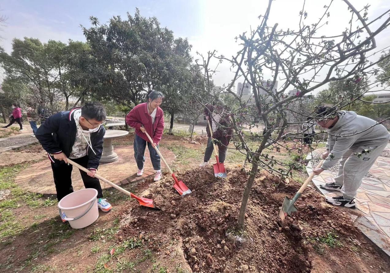 在活动中,我们师生代表满怀激情、团结一心,手持铁锹、手提水桶,共同前往指定区域分工合作。在老师们与同学们的相互配合下,有的人挥锹铲土,有的人扶树填土,还有的人培土浇水,共同完成了这次活动。通过辛勤的劳作,一棵棵树苗在经院“落户安家”。十年树木百年树人,植树就像育人,既需要打好前期的基础,也需要长期呵护、精心浇灌。我们师生代表积极参与植树活动,响应了国家绿色和谐生态理念,践行了学校“三有三实”人才培养战略,为学校和学院的发展增添了亮色。