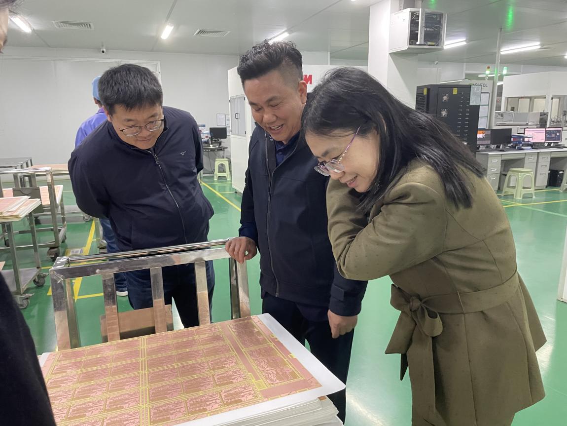 在企业领导带领下,我们马玉霞、乔长涛一行参观了企业钻孔、电镀、干膜等多个车间,认真听取企业当前经营现状、人才需求等介绍,了解企业详细信息。双方就人才培养情况、学生实习就业安排等开展了亲切友好座谈,并就建立就业实习基地达成一致,顺利签订协议并完成挂牌。