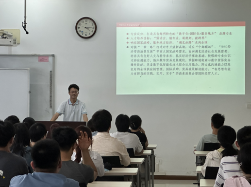 国际经济与贸易系系主任李方静老师就专业建设现状、培养目标、特色优势及就业方向作了全面介绍,并详细解读了2025版人才培养方案。他表示,在全球经济环境急剧变化的背景下,国贸专业人才面临新的机遇与挑战,建议同学们夯实专业基础,拓展国际视野,提升跨文化交流能力。