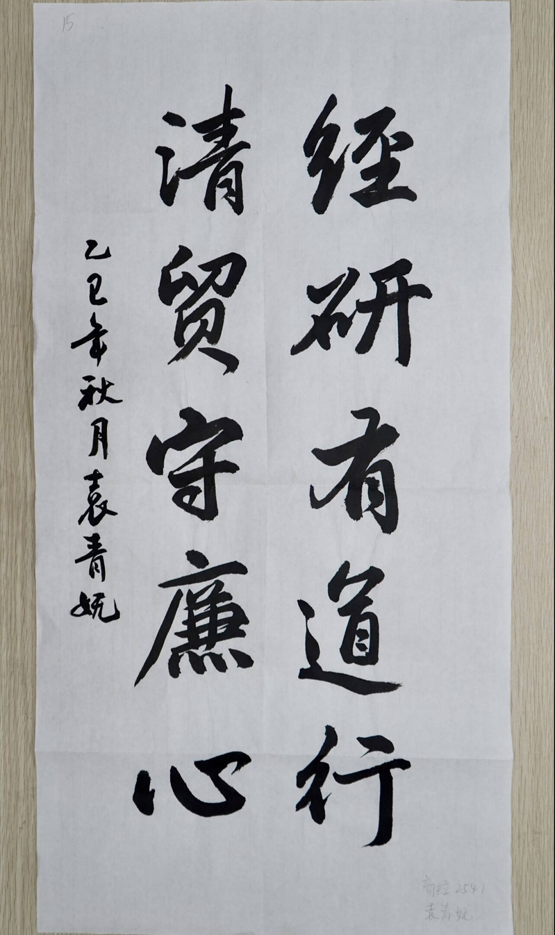 2025年11月17日,随着全讯白菜网09002025年“经研有道 清贸传廉”清廉教育主题系列活动书法比赛的圆满结束,“以笔传廉,书写廉韵”书法比赛优秀作品在学院集中展示,吸引了众多师生驻足欣赏。